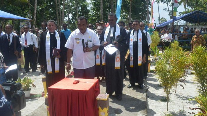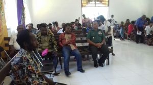 Raja Ampat – Bertempat di Gereja GKI Kasih Kampung Mumes Distrik Teluk Mayalibit Kabupaten Raja Ampat, Komandan Kodim 1715/Raja Ampat Letkol Inf Josef Paulus Kiba beserta Danramil 1715-01/Waisai Letda Inf Musa Maknun melaksanakan ibadah bersama di Gereja GKI Kasih Kampung Mumes sekaligus Peresmian dan Pentahbisan Gedung Gereja baru Jemaat Kasih, Rabu (31/10/2018).