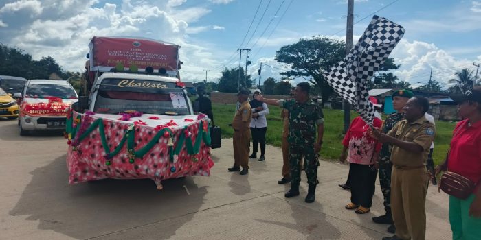 Sorong. Papua Barat Daya – Komandan Kodim 1802/Sorong Letkol Czi Angga Wijaya S.IP.,MA menghadiri kegiatan Pawai Santa Claus dalam rangka Meyambut hari raya Natal tahun 2024 Bertempat di Tugu Merah Jl.sorong klamono km 22 kelurahan klamasem Distrik Mariat Kabupaten Sorong. Selasa (03/12/2024).