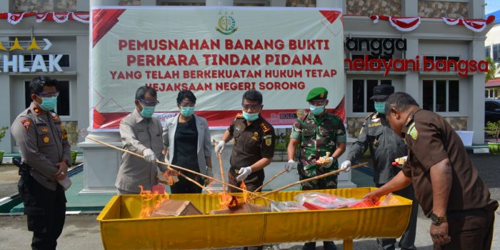 Kepala Kejaksaan Negeri Sorong MAKRUN, S.H., M.H. mengatakan Kegiatan pemusnahan ini merupakan rangkaian dari penegakan hukum yang dilaksanakan oleh Kejaksaan Negeri Sorong sebagai tindak lanjut dari pelaksanaan tugas jaksa untuk mengeksekusi barang bukti, baik itu perkara umum maupun perkara khusus yang telah mempunyai kekuatan hukum tetap. Ini adalah akhir dari proses penanganan perkara pidana, di mana dalam penanganan perkara pidana tidak hanya terkait dengan pidana badan saja, tetapi juga termasuk penyelesaian barang bukti yang akan kita musnahkan pada siang hari ini.