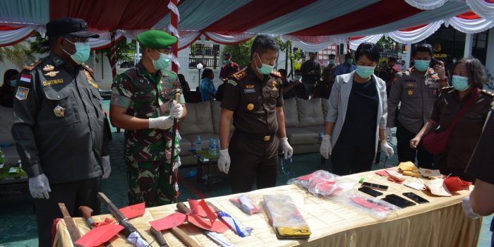 Adapun barang bukti yang dimusnahkan berasal dari 39 perkara dari periode bulan Mei 2024 sampai bulan Juli 2024. Dalam kurun waktu dua bulan tersebut, terdapat tujuh kasus penganiayaan, sebelas kasus narkotika, satu kasus pornografi, empat kasus pengeroyokan, empat kasus perlindungan anak, empat kasus pembakaran, penyalahgunaan pengangkutan BBM bersubsidi, dua kasus pencurian, satu kasus perjudian, satu kasus pemerkosaan, satu kasus penggelapan, dan perkara-perkara lainnya.