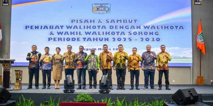 Sorong,- Komandan Kodim 1802/Sorong Letkol Czi Angga Wijaya S.IP.,MA menghadiri pisah sambut penjabat walikota Dr. Bernhard Eduard Rondonuwu, S.Sos., M.Si dengan walikota Septinus Lobat, S.H., MPA, dan wakil walikota sorong Anshar Karim. periode 2025 – 2030, bertempat di i Vega Prime Hotel and Convention.Jumat (07/03/2025).
