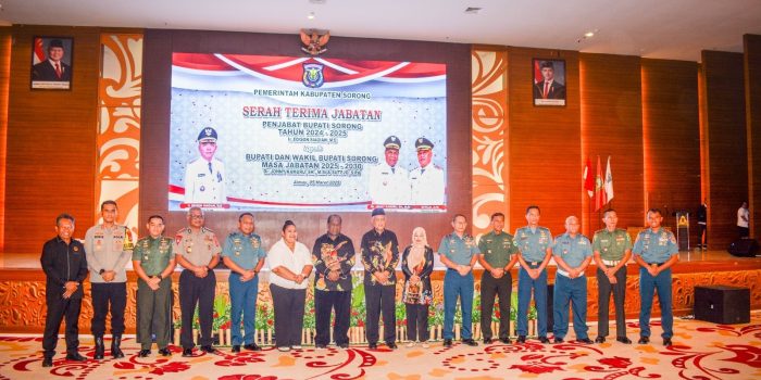 Sorong. Papua Barat Daya.- Komandan Kodim 1802/Sorong Letkol Czi Angga Wijaya S.IP,.MA. menghadiri serah terima jabatan Penjabat Bupati Sorong Ir. Edison Siagian, ME kepada Bupati Dan Wakil Bupati Sorong Periode 2025 – 2030 Dr. Johny Kamuru SH,M.Si & Sutejo S.Pd. Acara ini dihadiri oleh pimpinan Forkopimda, pimpinan partai pengusung, pimpinan OPD, Ketua Bawaslu, Ketua KPU Kabupaten Sorong, serta ratusan masyarakat yang antusias menyaksikan momen bersejarah ini. Bertempat Gedung Acc Aimas Kabupaten Sorong. Kamis (06/03/2025).
