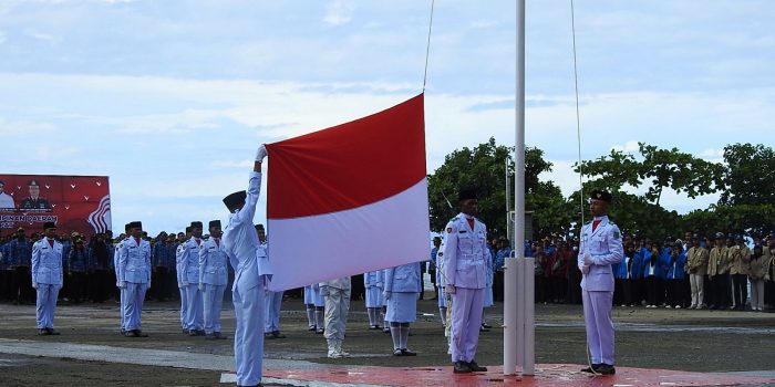 Upacara bendera memperingati HUT Kemerdekaan RI Ke- 79 tahun 2024 mengusung tema “Nusantara Baru Indonesia Maju”, sebagai Inspektur Upacara Bupati Raja Ampat Alfaris Umlati, SE.,MM,M.PD sebagai Komandan Upacara Danramil 1805-01/Waisai Kapten Czi Soya ,dan sebagai Perwira Upacara Pasi Pers Kodim 1805/Raja ampat Lettu Inf Kusno Hutomo.