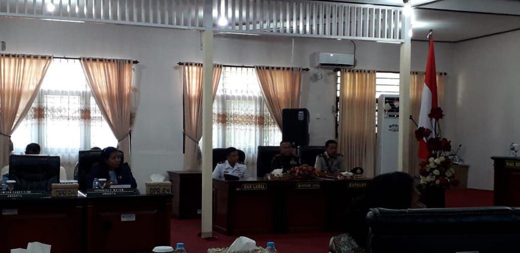 Raja Ampat – Dandim 1805/Raja Ampat Letkol Inf Josef Paulus Kaiba hadiri rapat sidang paripurna dalam rangka memperingati HUT Kabupaten Raja Ampat ke -16 tahun 2019 bertempat di Kantor DPRD Kab. Raja Ampat Jl. M. Saleh Taesa kelm Sapordanco, Distrik Waisai Kota Kabupaten Raja Ampat, Prov. Papua Barat dipimpin langsung oleh Rahmawati Tamima, S.IP (Wakil Ketua 1 DRPD Kab. Raja Ampat) dihadiri ±50 orang, Rabu (08/05/2019)