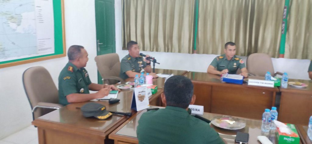 Raja Ampat – Dandim 1805/Raja Ampat Letkol Inf Josef Paulus Kaiba menerima kunjungan Tim Pengawas dan Pemeriksaan (Wasrik) Bidang Teritorial dari Pusat Teritorial Angkatan Darat (Pusterad) yang dipimpin Kolonel Czi Arh Kunto, beserta 2 (dua) orang anggota Perwira Pemeriksa (Kapten Inf Rahman, Kapten Cku solvan dan 1 (satu) orang Bintara Serka Wilun N. Bertempat di Ruang Data Makodim 1805/Raja Ampat Jln. Jenderal Sudirman, Kel Kota Waisai, Distrik Waisai Kota Kab. Raja Ampat, Rabu (17/07/2019).