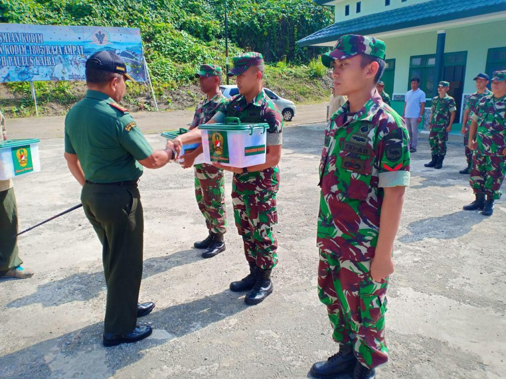 Raja Ampat – Dandim 1805/Raja Ampat Letkol Inf Josef Paulus Kaiba pada kegiatan apel pagi di Lapangan Apel Makodim 1805/Raja Ampat Memberikan pengarahan dan menyerahkan bingkisan dari Kasad dalam rangka Hari Raya Idul Fitri 1 Syawal 1440 Hijriah kepada Para Prajurit Kodim 1805/Raja Ampat, Jumat (24/05/2019).