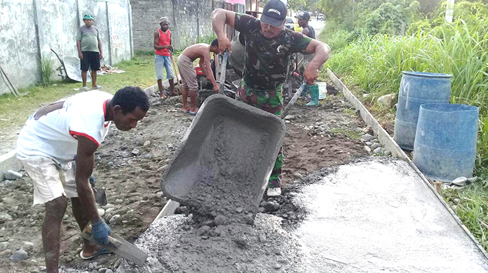 Hal demikian yang telah dilaksanakan oleh Koramil 1703-01/Manokwari melalui Danpos Distrik Manokwari Selatan an. Pelda Ciptoyo yang telah membantu warga binaannya melaksanakan pengecoran jalan bertempat di Kampung Sowi 4 Distrik Manokawari Selatan Kab. Manokwari Prov. Papua Barat, Selasa (19/09/2017).