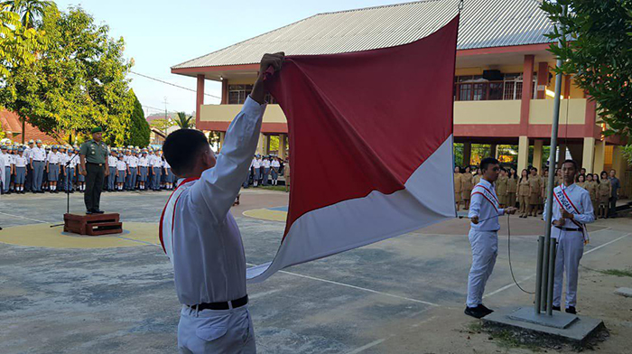 Sorong – Di luar tugas teritorialnya, Danramil 1802-01/Sorong Timur aktif sebagai inspektur Upacara (Irup) di sekolahan baik di SMA, SMP maupun SD yang berada di wilayah Kecamatan Sorong Timur dan sekitarnya, Selasa (15/01/2019).