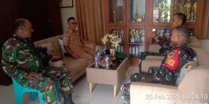 Dalam upaya mendukung program pemerintah, Danramil 1806-01/Bintuni, Letda Inf. Y. Mantong bersama anggota Babinsa melaksanakan kegiatan komunikasi sosial (Komsos) dengan Kepala Sekolah SMP Perintis Manimeri, Bapak Markus Limbong, S.Pd. Kegiatan ini berlangsung di Kampung Korano Jaya, Distrik Manimeri, Kabupaten Teluk Bintuni, Provinsi Papua Barat, pada Selasa (25/02/2025).