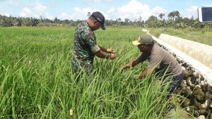 Sorong – Danramil 1704-03/Salawati Lettu Inf Deni P. Manuhutu beserta Babinsa mendampingi Dosen pertanian dari Universitas Muhammadiyah Kabupaten Sorong Bapak Ajang Marupey, SP. MP melaksanakan kegiatan dilokasi persawahan guna meninjau hasil padi percontohan tujuh belas macam jenis padi yang merupakan program Pemerintah Pusat, Jumat (28/09/2018).