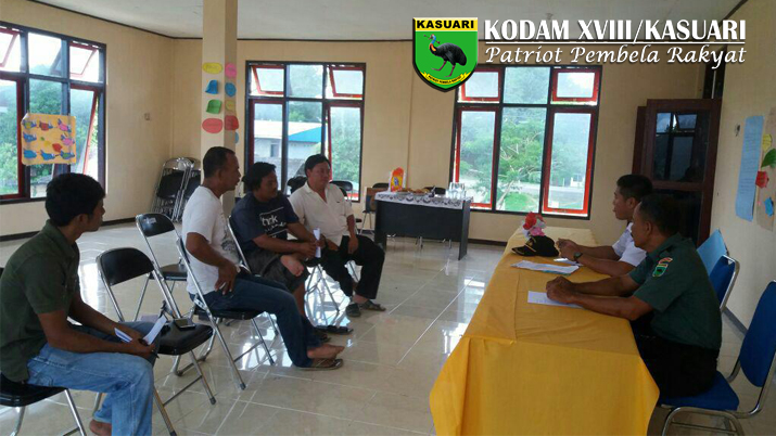Sorong – Babinsa Koramil 1704-01/Sorong Timur Pelda Giyanto melaksanakan mediasi dalam menyelesaikan masalah antara warga dengan pengusaha tanah yang selama ini terjadi di jl. Osok Kelurahan Aimas Kabupaten Sorong, Senin (10/04/2017).