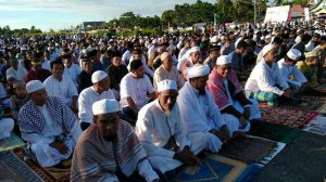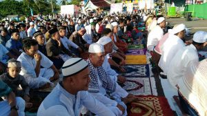 Pelaksanaan Shalat Idul Fitri 1439 Hijriyah ini dihadiri kurang lebih 2000 0rang Jamaah, yang bertindak sebagai Imam yaitu Ustad Abu Bakar Baharudin STHI.MTHI dan yang menjadi Khatib adalah Kyai Drs. Safarudin Latif S.Ag MM., pelaksanaan Shalat Idul Fitri dimulai pukul 07.30 WIT.