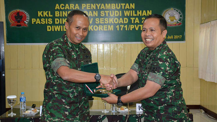 Dalam sambutan Danrem 171/PVT Brigjen TNI Ignatius Yogo Triyono, M.A mengatakan atas nama seluruh warga Korem 171/PVT mengucapkan ”Selamat Datang” kepada peserta Kuliah Kerja Lapangan Pasis Dikreg LV Seskoad Tahun 2017 di wilayah Korem 171/PVT. Merupakan suatu kebanggaan sekaligus kehormatan, dalam hal ini Korem 171/PVT dijadikan sebagai salah satu objek kegiatan KKL Binsat maupun Studi Kewilayahan Pemberdayaan Wilayah Pertahanan Pasis Dikreg LV Sekoad tahun 2017.