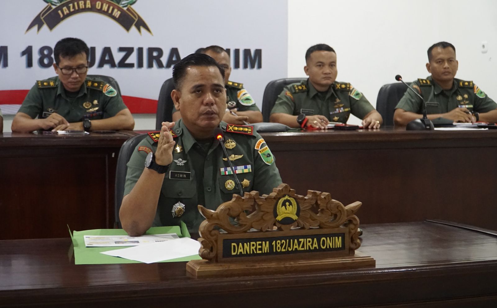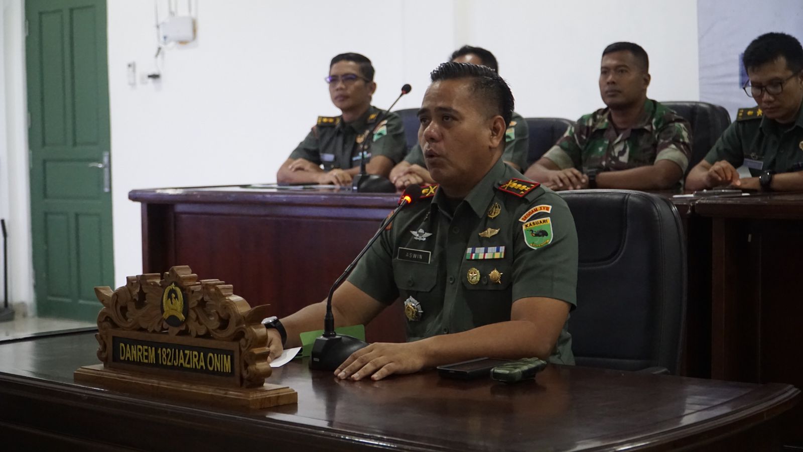 Komandan Korem 182/Jazira Onim, Kolonel Inf Aswin Kartawijaya membuka penataran Peningkatan Kemampuan Penatausahaan Penerimaan Hibah di Jajaran Korem 182/Jazira Onim secara Virtual, yang merupakan upaya Danrem 182/JO dalam memberikan Pembekalan kepada Komandan Satuan Jajaran Korem 182/Jazira Onim agar tidak terseret atau terjeblos ke dalam permasalahan Hukum. Kamis 4/4/2024.