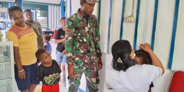Kolonel Inf Aswin Kartawijaya Puji Babinsa Kampung Yopanggar Distrik Teluk Duairi, Koramil 1811-01/Wasior Serda Steven, dalam melaksanakan pendampingan dalam rangka evaluasi rutin Balita di Kampung Percontohan Percepatan Penurunan Stunting Secara Terpadu pada Jumat (04/10/2024).