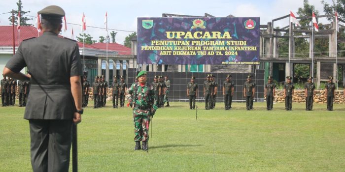 Momi Waren – Komandan Rindam XVIII/Kasuari Kolonel Inf Slamet, S.Sos., M.Han., memimpin Upacara Penutupan Pendidikan Kejuruan Tamtama Infanteri (Dikjurtaif) Abit Dikmata Gelombang I TNI AD Tahun Anggaran 2024, bertempat di Lapangan Upacara Rindam XVIII/Kasuari, Jl. Trans Manokwari – Bintuni, Kp. Dembek, Dist. Momi Waren, Kab. Manokwari Selatan, Prov. Papua Barat, Sabtu (28/09/2024).