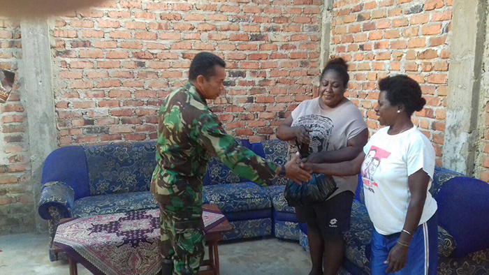 Sorong – Sebagai bagian tugas Binter untuk menjaga kondusifitas wilayah, Babinsa Kampung Klasimigik Koramil 1704-10/Makbon Sertu Ahmad Safa melaksanakan komunikasi sosial dengan warga binaan dengan cara mendatangi rumah Bapak Leonard di Kampung Klasimigik, Distrik Makbon, Kab. Sorong, Senin (18/09/2017).