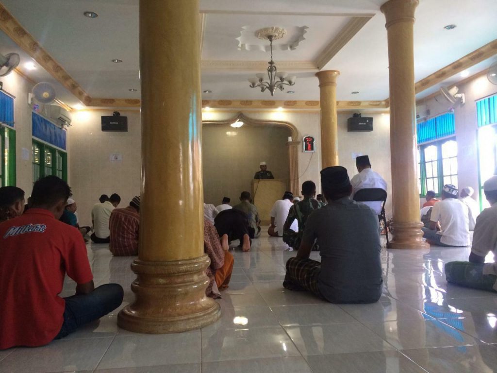Sorong– Salah satu cara yang dilakukan oleh seorang prajurit TNI dalam berkomunikasi sosial dan mendekatkan diri dengan warga masyarakat dan Tuhan, adalah dengan kegiatan spiritual atau ibadah. Seperti halnya yang dilakukan Danramil 1802-01/Sorong Timur Mayor Inf H. Triyana, S.Pd.I M.Pd.I memberikan Khutbah Shalat Jumat dengan tema “Setiap Pribadi Muslim Memiliki Kewajiban Amar Ma’ruf Nahi Mungkar.” Bertempat di Masjid Miftahul Khoir Kota Sorong, Jumat (15/02/2019).