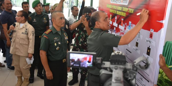 Hal ini dikatakan Pangdam XVIII/Kasuari, Mayjen TNI Ilyas Alamsyah, S.E., M.Tr.(Han)., CGCAE., dalam sambutannya pada acara Deklarasi Pemilu Damai Tahun 2024 Kabupaten Manokwari, yang diselenggarakan di aula Kodim 1801/Manokwari, Papua Barat, pada Rabu (15/11/2023).