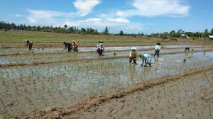 Manokwari – Guna mendukung program ketahanan pangan nasional, Babinsa Koramil 1703-06/Ransiki Sertu Paiman melaksanakan pendampingan pertanian tanam padi bersama Kelompok Tani “Margo Rukun” Pimpinan Bapak Sukoco di areal persawahan kampung Margo Mulyo Distrik Oransbari, Kabupaten Manokwari Selatan, Rabu (25/07/18).