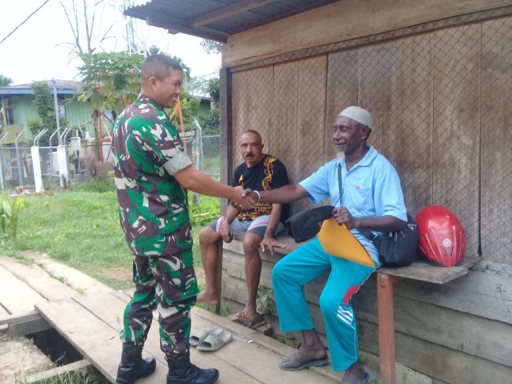 Aktifitas masyarakat sehari hari dapat dilakukan dengan adanya situasi yang nyaman dilingkungan. Untuk menciptakan suasana kebersamaan, ketertiban dan ketentraman warga di wilayah binaan. Babinsa Koramil 1801-08/Bintuni Serda Laode Syahrir melaksanakan Komsos dengan warga binaannya di Kampung Tahiti Distrik Kab. Teluk Bintuni Prov. Papua Barat, Selasa (06/08/2019).