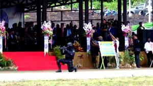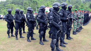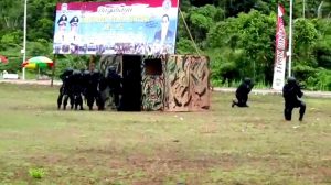 Sorong – Prajurit Kompi Senapan E Yonif RK 752/VYS turut memeriahkan HUT Ke-51 Kab. Teluk Bintuni dengan melaksanakan Demonstrasi Raid Pembebasan Tawanan dan Raid penghancuran, Sabtu (09/06/2018).