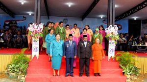 Turut hadir dalam perayaan HUT Ke-51 Kab. Teluk Bintuni, antara lain Gubernur Papua Barat Dominggus Mandacan, Pangdam XVIII/Kasuari Mayjen TNI Joppye Onesimus Wayangkau, Kapolda Papua Barat Brigjen Rudolf Albert Rodja, dan Ketua MRP PB Maxsi Ahoren. Masayarakat Kab. Teluk Bintuni sangat antusias untuk menonton demostrasi yang dilaksanakan oleh Prajurit Kompi Senapan E Yonif RK 752/VYS.