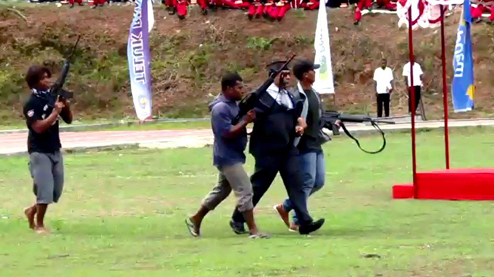 Disimulasiakan bahwa Kab. Teluk Bintuni mendapatkan teror oleh segrombolan sparatis dan mengakibatkan salah satu dari asisten pemerintahan Kab. Teluk Bintuni diculik. Kemudian Kompi Senapan E Yonif RK 752/VYS yang dipimpin oleh Lettu Inf Benny T. I. Siregar (Danki), mendapat perintah dari Komandan Yonif RK 752/VYS Letkol Inf Eka Ganta Chandra, S.I.P. untuk melaksanakan tugas Raid Pembebasan Tawanan dan Raid penghancuran.