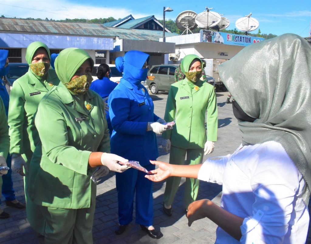 Manokwari. kodam18kasuari.tni-ad.mil.id – Dharma Pertiwi Daerah P, yang diketuai Ny. Retno Ali Hamdan Bogra beserta ibu-ibu pengurusnya, Kamis (9/7/2020) membagikan masker kepada warga masyarakat Kota Kabupaten Manokwari, Provinsi Papua Barat.