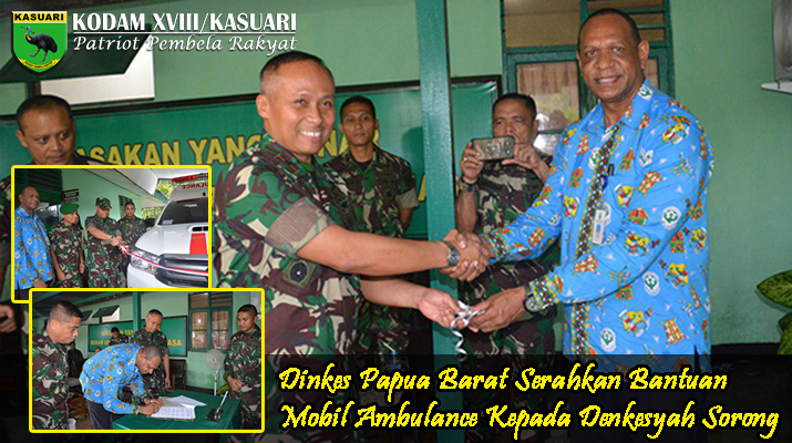 Dalam sambutan Dandenkesyah 17.04.01/Sorong Letkol Ckm Edy S K M, M.Amd. Kes, menyampaikan apresiasi yang sangat mendalam seiring terialisasinya permohonan dukungan Kendaraan Ambulance yang di ajukan kepada Dinas Kesehatan Prov Papua Barat, sehingga dapat membantu dalam melayani Prajurit, PNS dan keluarga di Area Service Korem 171/PVT serta pelayanan kepada masyarakat dalam hal kegiatan bhakti sosial, pengobatan massal, khitanan massal, donor darah serta kegiatan karya bhakti guna mendukung tugas pembinaan territorial.