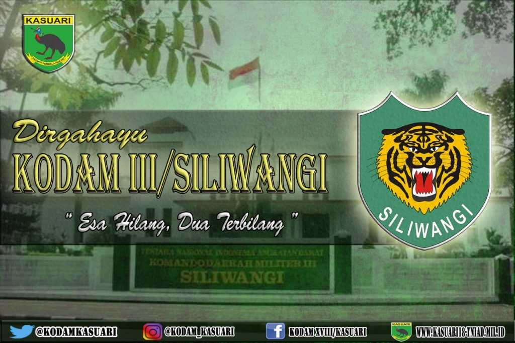 Dirgahayu Kodam III/Siliwangi “Esa Hilang, Dua Terbilang” admin 20/05/2019 BERITA KEGIATAN Posted in BERITA KEGIATAN, PENGUMUMAN Navigasi pos Previous Previous post: Selamat Hari Kebangkitan Nasional “Bangkit Untuk Bersatu”Next Next post: Babinsa Rufei : Bukti Nyata Manunggal Dengan Rakyat Bukan Sekedar Ucapan Tapi Perbuatan