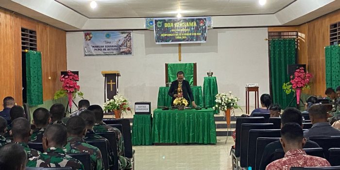 Momi Waren – Rindam XVIII/Ksr menggelar doa bersama dengan seluruh Prajurit Rindam XVIII/Ksr dan Prajurit Yonif TP805/KSW dalam rangka menyambut HUT Rindam XVIII/Ksr, sebagai wujud ungkapan rasa syukur dan refleksi pengabdian Tentara Nasional Indonesia Rindam XVIII/Ksr Ke- 6 Tahun 2025, Kamis, (27/02/2025).