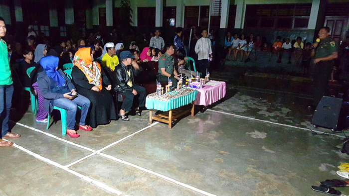Sorong – Koramil 1704-01/Sortim bersama masyarakat Kampung Makasar Kelurahan Malabutor Distrik Sorong Manoi sekitar lebih kurang 250 orang mengelar acara nonton bareng (nobar) film Penumpasan Penghianatan G30S/PKI di lapangan SMA Guppy Kab. Sorong, berbagai makanan ringan yang direbus, seperti kacang, jagung dan pisang disediakan selama acara nonton bareng tersebut, Jumat (13/10/17).