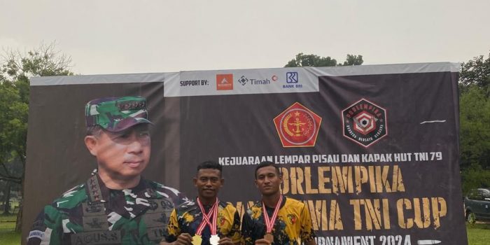 Jakarta Timur. kasuari18-tniad.mil.id – Prestasi membanggakan kembali ditorehkan oleh dua prajurit Batalyon Infanteri (Yonif) 763/Senetia Buerama Amor (SBA), Brigif 26/GP dalam ajang Persatuan Olahraga Lempar Pisau dan Kapak Indonesia (Porlempika) Tahun 2024 yang digelar di Bumi Perkemahan dan Graha Wisata Pramuka (Buperta) Cibubur, Jakarta Timur, yang dilaksanakan mulai 23 s.d 24 November.