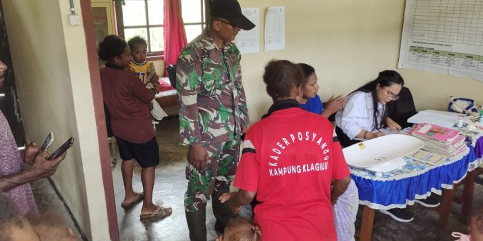 Sorong. Papua Barat Daya.- Babinsa Koramil 1802-05/Makbon Serka Ponijan melaksanakan pendampingan posyandu oleh petugas kesehatan untuk mengontrol kesehatan Balita dan Ibu hamil yang berdomisili di Kampung malawor distrik makbon kabupaten sorong. Sabtu (24/08/2024).