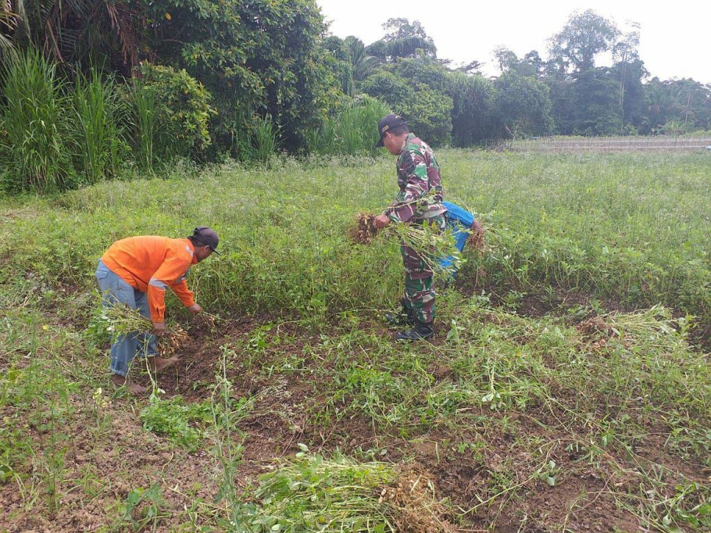 Dukung Program Pemerintah, Babinsa Salawati Bantu Panen Kacang