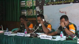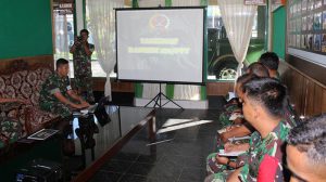 Sorong – Kasrem 171/PVT Kolonel Inf Dian Sundiana, S.E, memimpin pelaksanaan Geladi Posko I di hadiri oleh Kasi Intelrem 171/PVT Kolonel Inf Albert Panjaitan, Kasi Opsrem 171/PVT Kolonel Inf Anwar, Kasi Terrem 171/PVT Kolonel Arm Hari Wibowo, Dandim 1704/Sorong Letkol Inf Andar Dodianto Panggabean, para Pasi Korem 171/PVT dan Perwira Kodim 1704/Sorong bertempat di Aula Kodim 1704/Sorong, Sorong-Papua Barat, Rabu (16/05/2018).