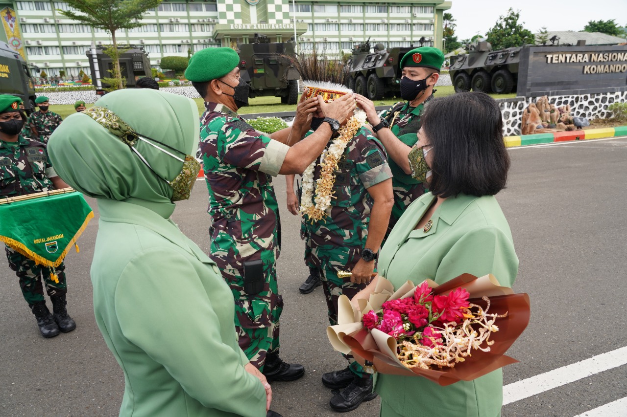 Pangdam menyampaikan apresiasi dan terima kasih yang tulus kepada seluruh keluarga besar Kodam Kasuari dan berharap agar ia dan keluarga dapat juga diterima dengan lapang dada dan tulus menjadi bagian dari Kodam XVIII/Kasuari.