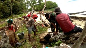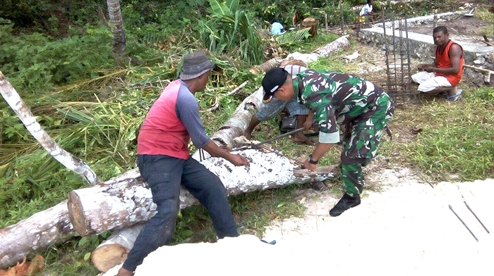 Sorong – Dalam rangka mewujudkan kemanunggalan antara Bintara Pembina Desa (Babinsa) dan masyarakat yang ada di daerah binaan, Babinsa 1704-03/Saonek Serda La Nuba membantu warga membangun pondasi dan rakit mal yang diperuntukkan sebagai tempat Genset PLN di Kampung Yenbekwan Distrik Moesmansar Kabupaten Raja Ampat, Rabu (07/02/18).