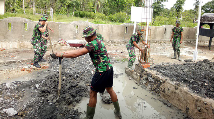 Sorong – Danramil 1704-06/Beraur Lettu Inf Semba pimpin dalam pembinaan pangkalan Koramil berupa pembuatan tembok pagar dan pembersihan, bertempat di jalan Klamono Kab sorong, Senin (22/10/2018).