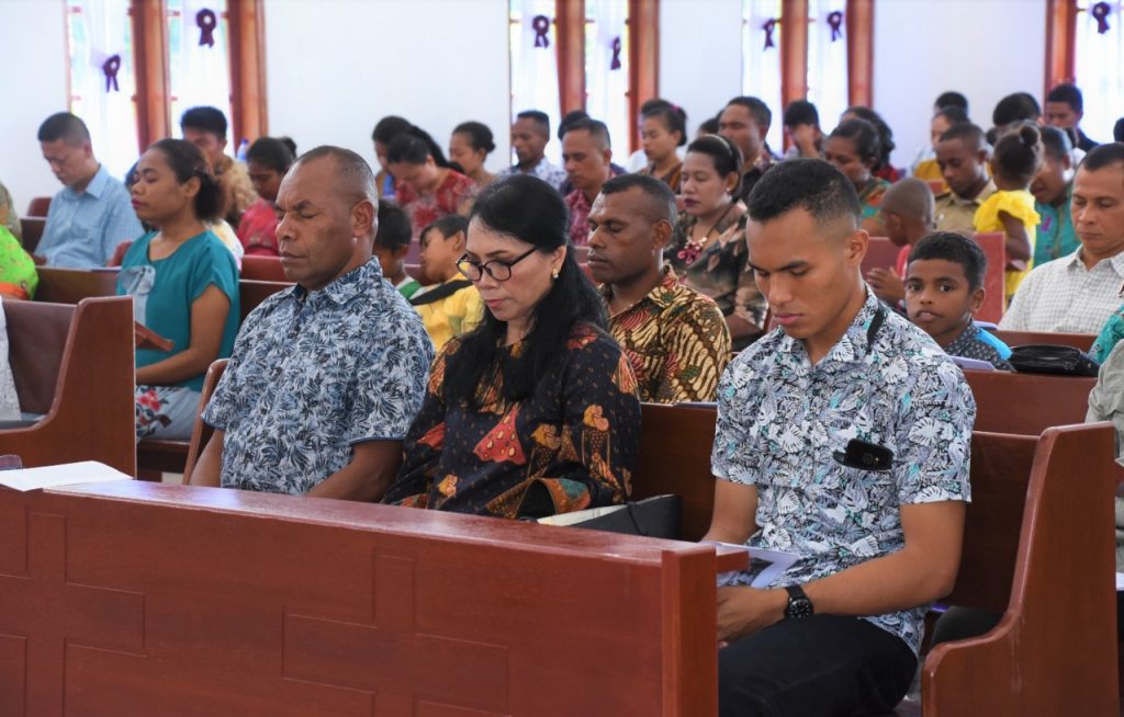 Pangdam XVIII/Kasuari Mayor Jenderal TNI Joppye Onesimus Wayangkau beserta Ny. Istriani Wayangkau dan putranya, Irdam XVIII/Kasuari, Kabintaldam XVIII/Kasuari, Aspers Kasdam XVIII/Kasuari, Kaajendam XVIII/Kasuari dan Kapuskodalopsdam XVIII/Kasuari beserta anggota dan ASN Kodam XVIII/Kasuari, melaksanakan ibadah Kenaikan Yesus Kristus Tahun 2019 bersama Jemaat GKI (Gereja Kristen Injili) di Tanah Papua Eben Haezer Arfai I – Makodam XVIII/Kasuari dengan hikmat, Kamis (30/Mei /2019).