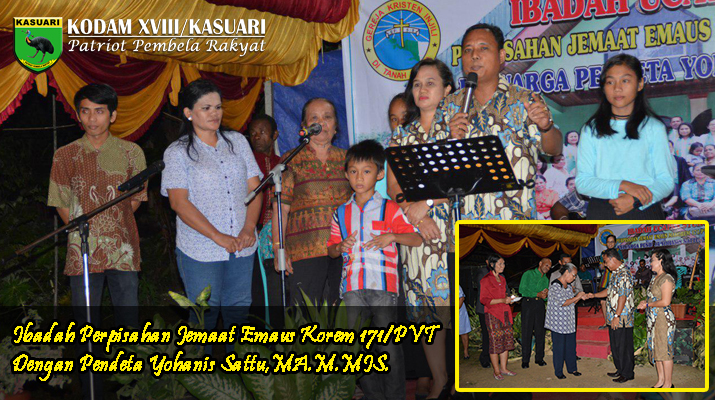 Ibadah akhir bulan dan ibadah syukur yang dilaksanakan ini di selenggarakan untuk perpisahan Pendeta Yohanis Sattu, dengan jemaat Emaus Korem 171/PVT yang pindah ke Jemaat Gereja Kasih Perumnas, dalam kehidupan melayani banyak yang mengenal sosok Pendeta yang keras, dengan aturan dan sesuai dengan Firman Allah karena itu semua yang dapat mengubah dan memperbaiki sifat dan tingkah laku jemaat, sehingga menambah kuantitas dan kualitas iman dan membawa pertumbuhan di dalam jemaat karena hingga saat ini pertambahan jumlah jemaat di Gereja Emaus Makorem 171/PVT semakin bertambah.