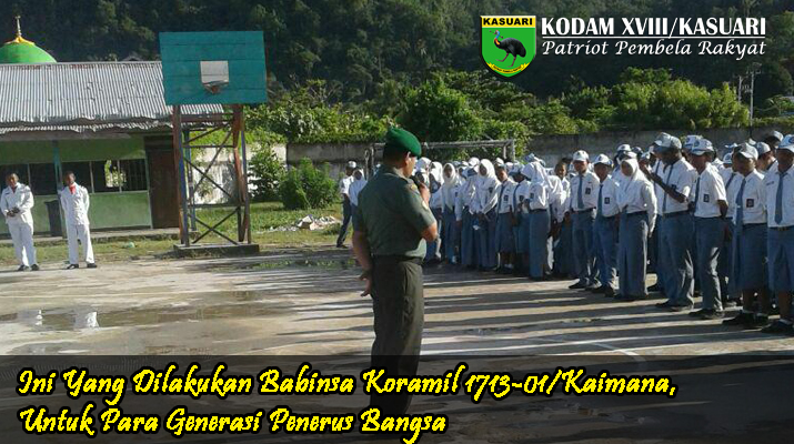 Kegiatan yang dilakukan Babinsa Koramil 1713-01/Kaimana ini merupakan salah satu program yang harus dilaksanakan oleh aparat teritorial guna menanamkan rasa cinta tanah air terhadap seluruh lapisan generasi penerus bangsa pada usia dini .