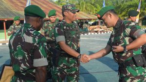 Sorong – Danrem 171/PVT Brigjen TNI Ignatius Yogo Triyono,M.A, memimpin Acara Penyerahan Piagam Penghargaan Kepada Prajurit Korem 171/PVT yang Berprestasi, dihadiri oleh Kasrem 17/PVT Kolonel Inf Dian Sundiana, S.E, para Kepala Seksi Korem 171/PVT, para Komandan Satuan dan Kabalak Aju jajaran Korem 171/PVT, Prajurit dan PNS Korem 171/PVT,bertempat di Lapangan Apel Korem 171/PVT,  Sorong – Papua Barat, Rabu (25/04/18).