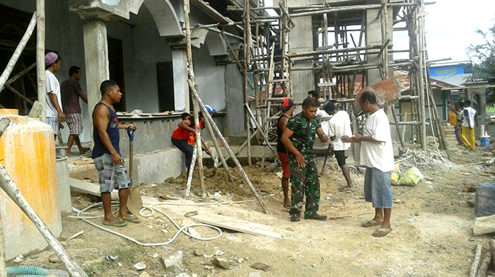 “TNI adalah tentara rakyat, jadi apabila ada rakyat yang membutuhkan bantuan baik tenaga maupun pikiran, maka TNI selalu siap sedia dan ikhlas. Apalagi kegiatan ini adalah pembangunan sarana Ibadah, ini kegiatan mulia,” ujar Koptu M. Jafar anggota Koramil 1704-03/Saonek di sela-sela kegiatan.