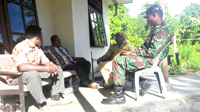 Sorong – Bintara Pembina Desa (Babinsa) Koramil 1704-03/Saonek, Serda Aziat melaksanakn komumikasi sosial dengan tokoh masyarakat di kampung Warsambim, Distrik Teluk Mayalibit, Kab. Raja Ampat, Senin (05/06/2017).