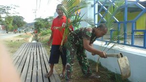 Sorong – Dalam rangka menyambut H-1 Hari Raya Idul Fitri 1439 H, Serda Agus Selaku Babinsa Koramil 1704-01/Sorong Timur bersama Warga dan Ketua Takmir Mesjid Fastabiqul Khoirut Bapak H. Ilham melaksanakan Pembersihan halaman Mesjid dan penanaman pohon di taman Mesjid bertempat di Jln. Raya Sapta Taruna Km. 10 Kelurahan Matamalagi, Kota Sorong, Kamis (14/06/2018).
