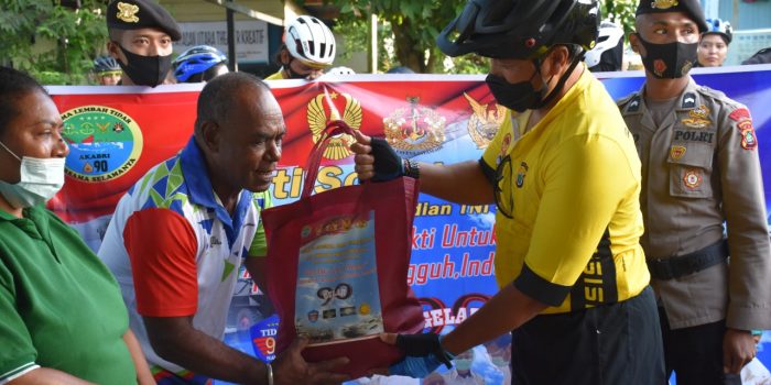 Pembagian paket sembako dilaksanakan melalui kegiatan gowes sepeda bersama dimulai dari kantor Satpolair Polres Manokwari menuju Pantai Aipiri dan diakhiri dengan acara ramah tamah.