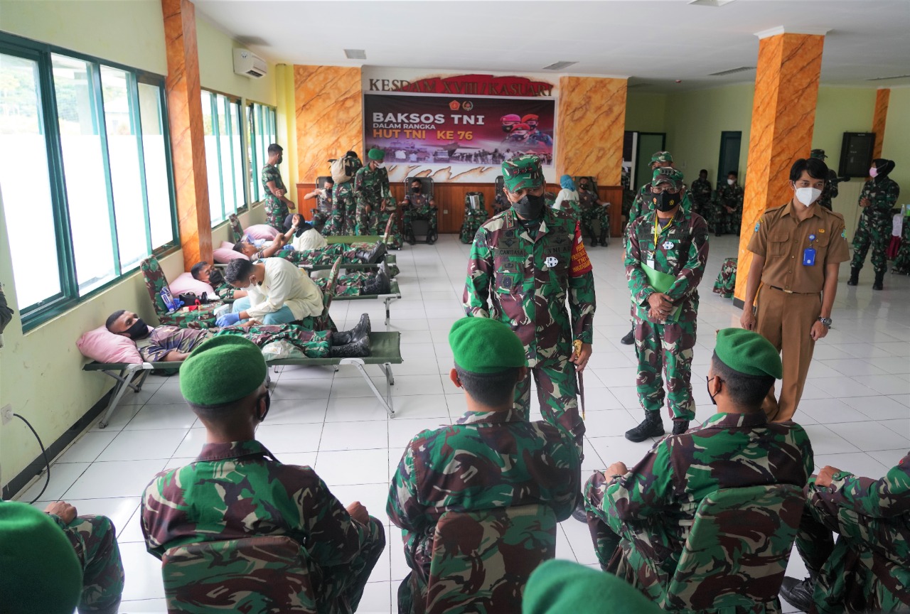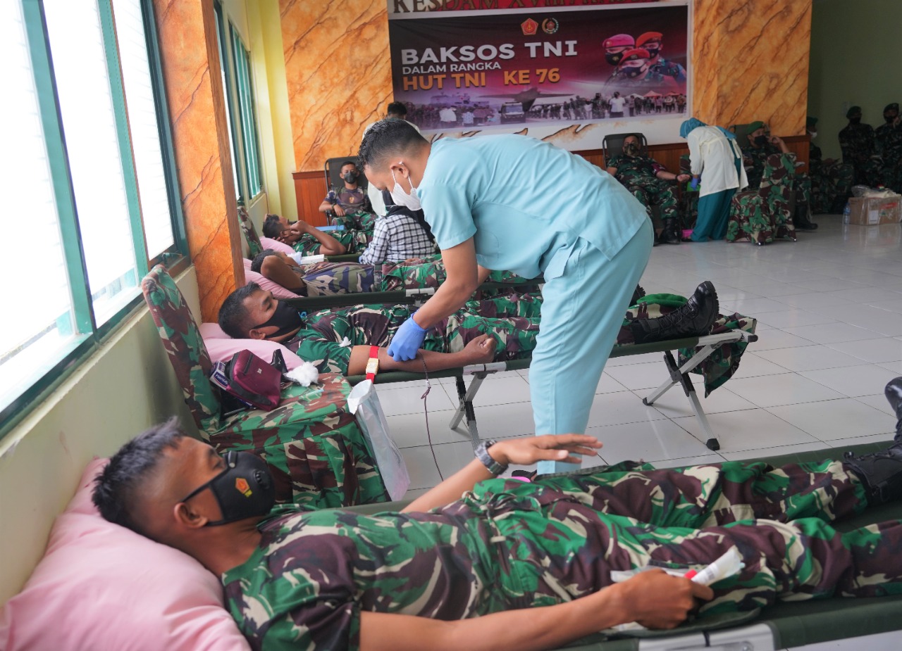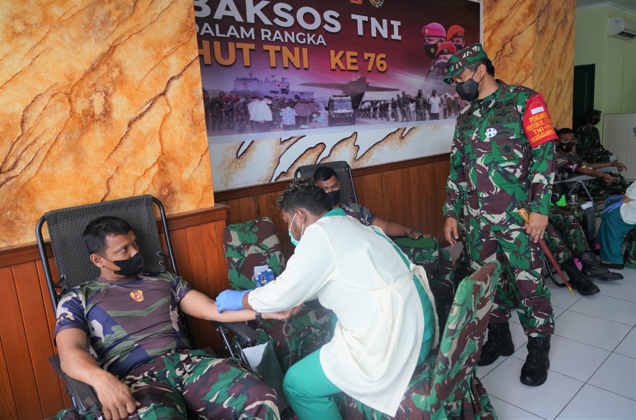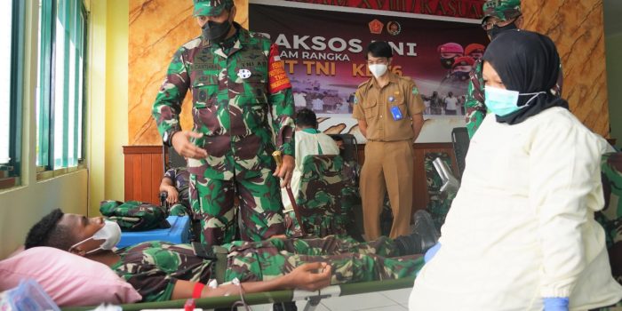 Rangkaian donor darah dilaksanakan tanggal 21 dan 23 September 2021 digelar secara terpusat dan tersebar di seluruh jajaran Kodam XVIII/Kasuari dengan target 500 kantong darah.