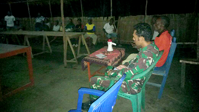 Inanwatan – Sebagai ujung tombak satuan teritorial dilapangan, Batuud Koramil 1704-11/Inanwatan Serka Y. Pattimura Ratissa didampingi oleh Babinsa Koramil 1704-11/Inanwatan Sertu Iswan melaksanakan kegiatan Komunikasi Sosial dengan perangkat Kampung Mate bertempat di Balai Kampung Distrik Inanwatan Kab Sorong Selatan, Sabtu (12/08/2017)